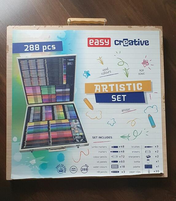 Witam sprzedam zestaw plastyczny Easy Creative 288szt Kredtki Kredki pastelowe Mazaki Farby pastelowe Strugaczki Pędzelkiem ...