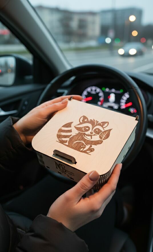 Gotowy Pomysł na Prezent: Każdą zawieszkę pakuje w autorskie, grawerowane pudełko z opisem nut zapachowych olejku.