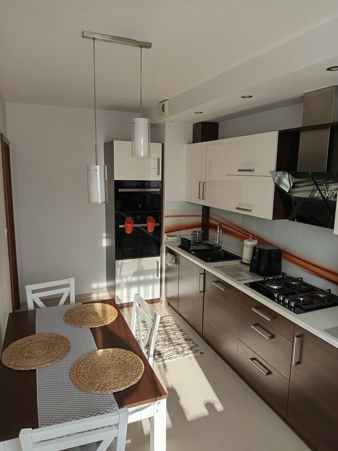 Zapraszam do zakupu komfortowego mieszkania w nowym budownictwie 52 m2 zlokalizowanego w jednej z najbardziej pożądanych dzielnic Puław zlokalizowanego na os. NIWA.Mieszkanie umeblowane, gładź na ścianach, odmalowane w 2025r. Meble w przedpokoju i kuchni robione na wymiar. Stan mebli idealny, niezniszczone. Kuchnia na zawiasach BLUM z cichym domykiem.