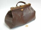 Piękna torba podróżna, skórzana z mosiężnym zapięciem, Francja, vintage, lata 80. Torba jest wykonana z brązowej ...