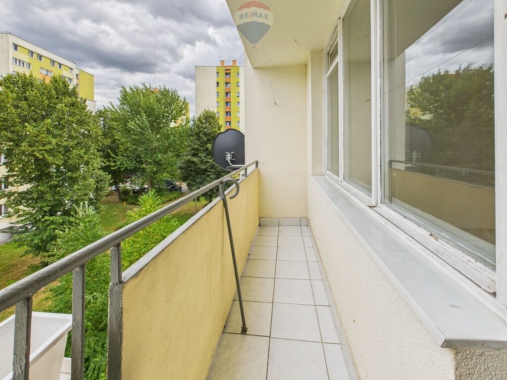 salonu (22 m²) z dużym oknem i wyjściem na słoneczny balkon