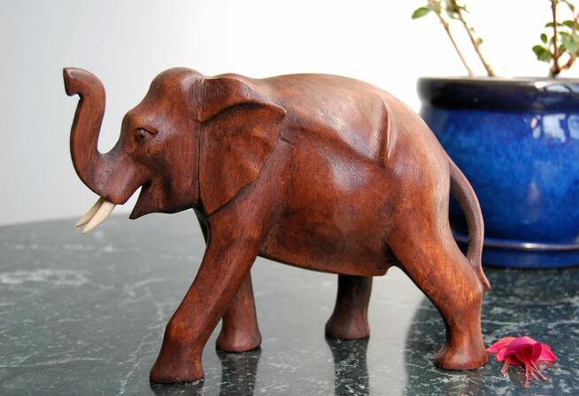 8Piękna, drewniana rzeźba słonia - rękodzieło z Egiptu. Słoń jest starannie wyrzeźbiony w jednym kawałku drewna ...