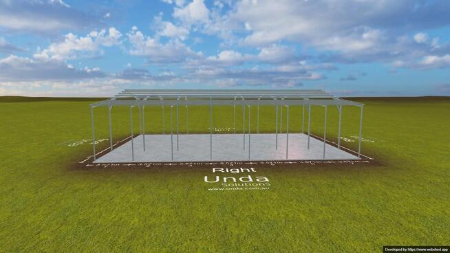 Nowa konstrukcja hali 12x25x5.5. z dodatkowym zadaszeniem po dluższej ścianie bez słupków podpierajacych.Ocynkowana ...